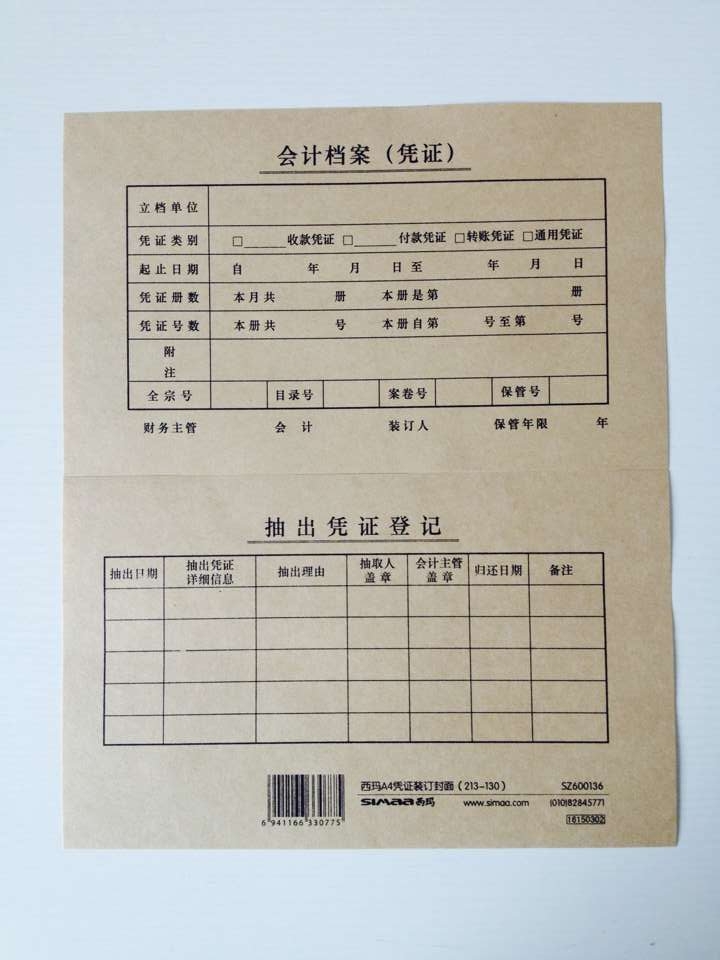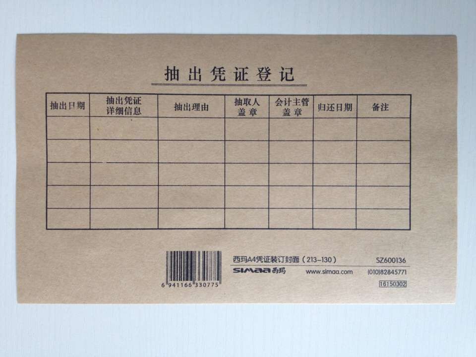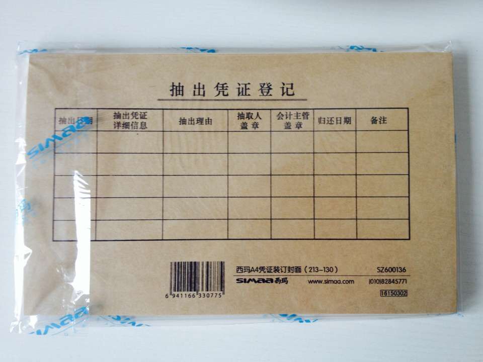 西玛(SIMAA)SZ600136 财务用品 A4凭证装订封皮(213-130) 凭证装订封面,25套/包